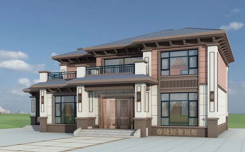 上下拼色兩層新中式別墅,大氣?。?/p>